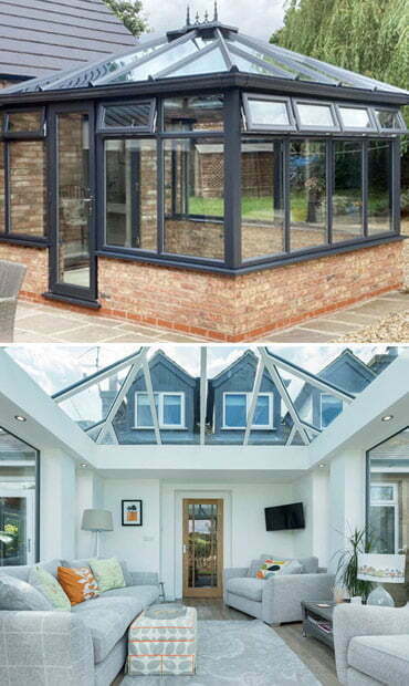 Our conservatories are custom designed to your exact requirements. Although white is the most popular colour they can be specified in a wide selection of colours including Anthracite Grey and Black, as well as an attractive range of woodgrain style finishes.